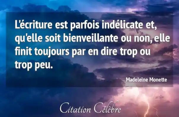 L'écriture est parfois indélicate et, qu'elle soit bienveillante ou non, elle finit toujours par en dire trop ou trop peu.