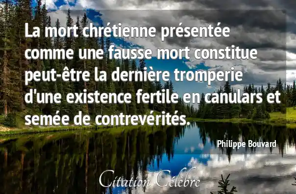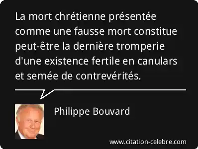 La mort chrétienne présentée comme une fausse mort constitue peut-être la dernière tromperie d'une existence fertile en canulars et semée de contrevérités.