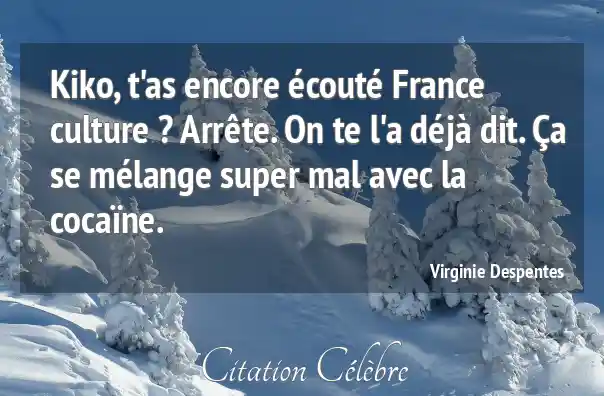 Citation Virginie Despentes culture : Kiko, t'as encore écouté France culture ? Arrête. On te...