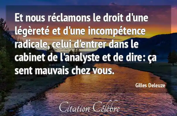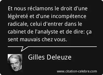 Et nous réclamons le droit d'une légèreté et d'une incompétence radicale, celui d'entrer dans le cabinet de l'analyste et de dire: ça sent mauvais chez vous.
