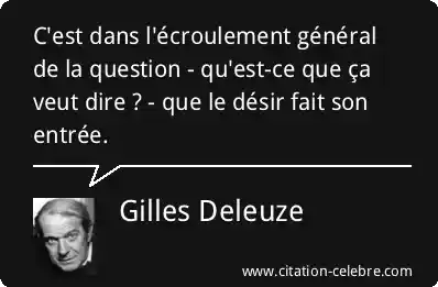 C'est dans l'écroulement général de la question - qu'est-ce que ça veut dire ? - que le désir fait son entrée.