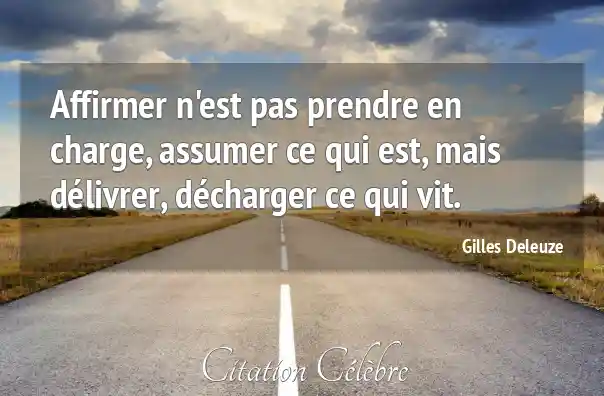 Affirmer n'est pas prendre en charge, assumer ce qui est, mais délivrer, décharger ce qui vit.