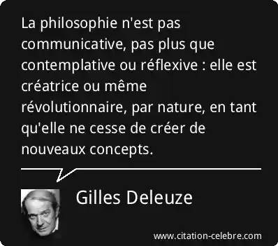 La philosophie n'est pas communicative, pas plus que contemplative ou réflexive : elle est créatrice ou même révolutionnaire, par nature, en tant qu'elle ne cesse de créer de nouveaux concepts.