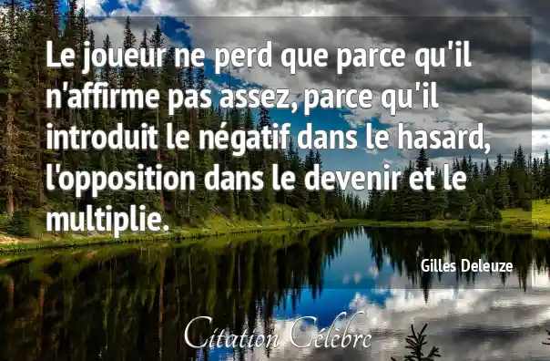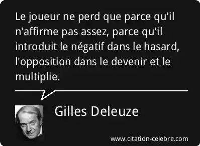Le joueur ne perd que parce qu'il n'affirme pas assez, parce qu'il introduit le négatif dans le hasard, l'opposition dans le devenir et le multiplie.