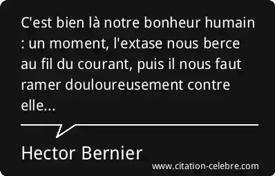 C'est bien là notre bonheur humain : un moment, l'extase nous berce au fil du courant, puis il nous faut ramer douloureusement contre elle...