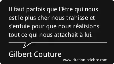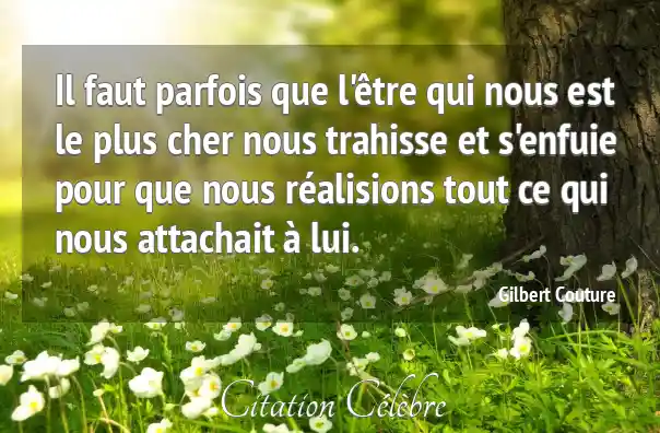 Il faut parfois que l'être qui nous est le plus cher nous trahisse et s'enfuie pour que nous réalisions tout ce qui nous attachait à lui.