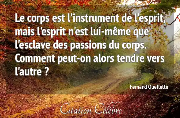 Le corps est l'instrument de l'esprit, mais l'esprit n'est lui-même que l'esclave des passions du corps. Comment peut-on alors tendre vers l'autre ?