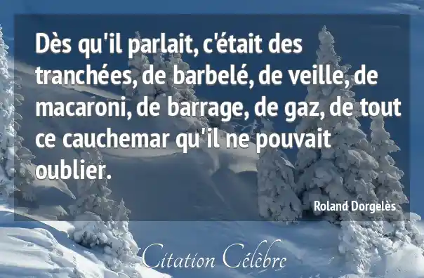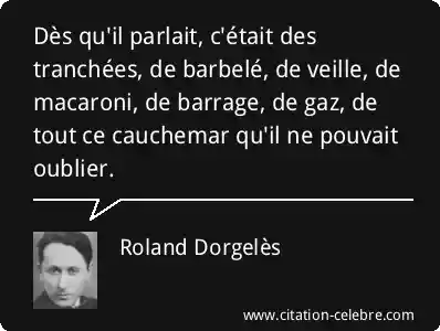 Dès qu'il parlait, c'était des tranchées, de barbelé, de veille, de macaroni, de barrage, de gaz, de tout ce cauchemar qu'il ne pouvait oublier.