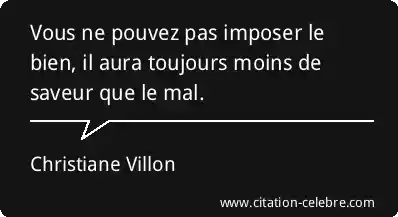 Vous ne pouvez pas imposer le bien, il aura toujours moins de saveur que le mal.