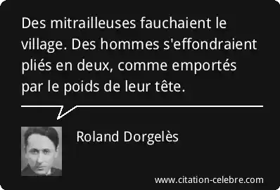 Des mitrailleuses fauchaient le village. Des hommes s'effondraient pliés en deux, comme emportés par le poids de leur tête.