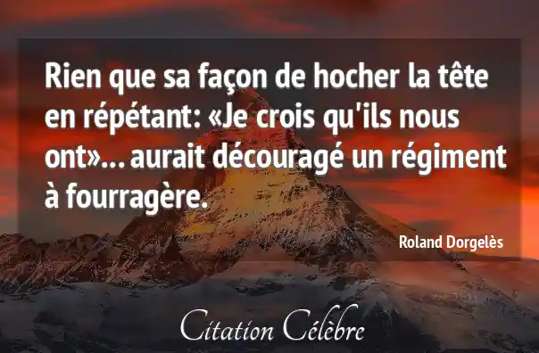 Rien que sa façon de hocher la tête en répétant: «Je crois qu'ils nous ont»... aurait découragé un régiment à fourragère.