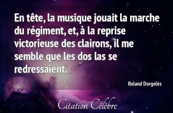 En tête, la musique jouait la marche du régiment, et, à la reprise victorieuse des clairons, il me semble que les dos las se redressaient.