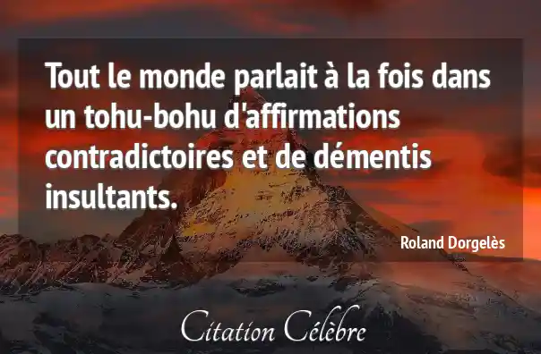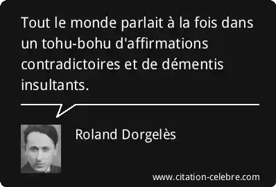 Tout le monde parlait à la fois dans un tohu-bohu d'affirmations contradictoires et de démentis insultants.