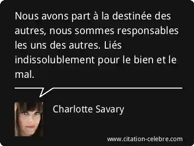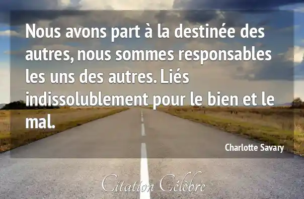 Nous avons part à la destinée des autres, nous sommes responsables les uns des autres. Liés indissolublement pour le bien et le mal.