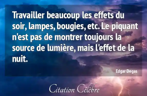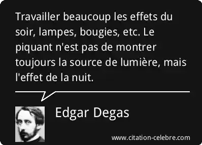 Travailler beaucoup les effets du soir, lampes, bougies, etc. Le piquant n'est pas de montrer toujours la source de lumière, mais l'effet de la nuit.