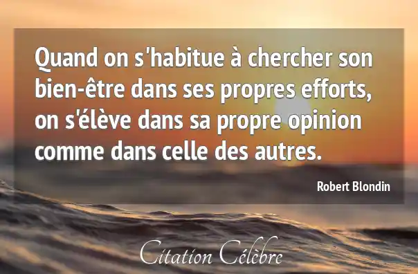 Quand on s'habitue à chercher son bien-être dans ses propres efforts, on s'élève dans sa propre opinion comme dans celle des autres.