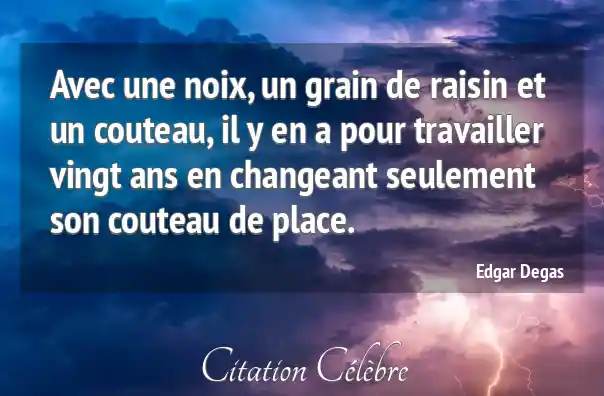 Avec une noix, un grain de raisin et un couteau, il y en a pour travailler vingt ans en changeant seulement son couteau de place.