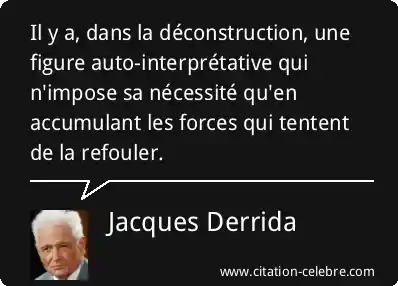 Il y a, dans la déconstruction, une figure auto-interprétative qui n'impose sa nécessité qu'en accumulant les forces qui tentent de la refouler.