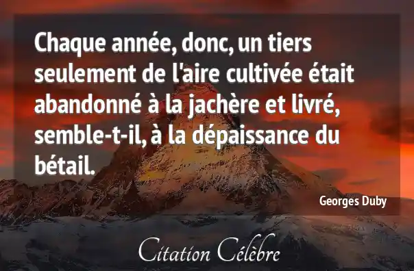 Chaque année, donc, un tiers seulement de l'aire cultivée était abandonné à la jachère et livré, semble-t-il, à la dépaissance du bétail.
