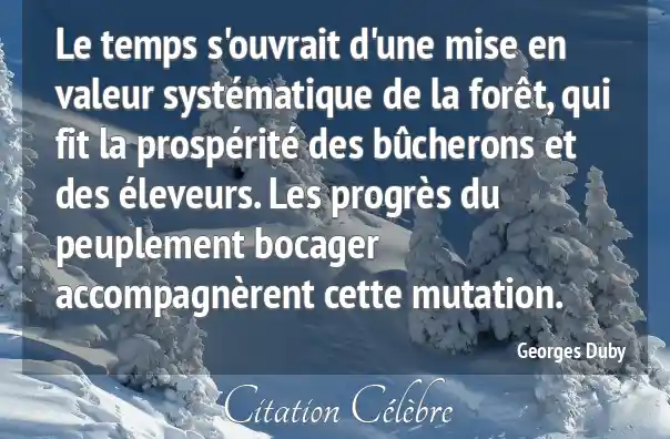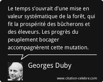 Le temps s'ouvrait d'une mise en valeur systématique de la forêt, qui fit la prospérité des bûcherons et des éleveurs. Les progrès du peuplement bocager accompagnèrent cette mutation.