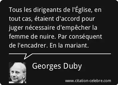 Tous les dirigeants de l'Église, en tout cas, étaient d'accord pour juger nécessaire d'empêcher la femme de nuire. Par conséquent de l'encadrer. En la mariant.