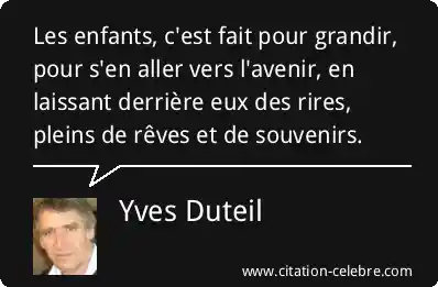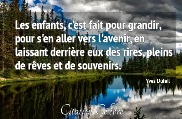 Les enfants, c'est fait pour grandir, pour s'en aller vers l'avenir, en laissant derrière eux des rires, pleins de rêves et de souvenirs.