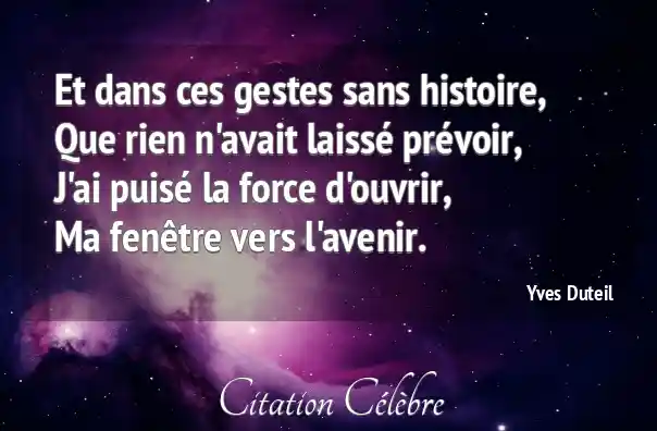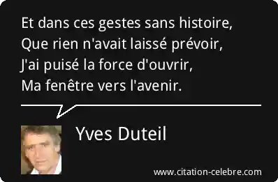 Et dans ces gestes sans histoire,Que rien n'avait laissé prévoir,J'ai puisé la force d'ouvrir,Ma fenêtre vers l'avenir.