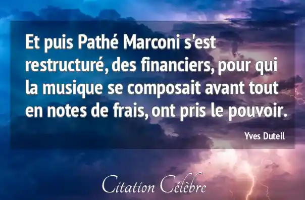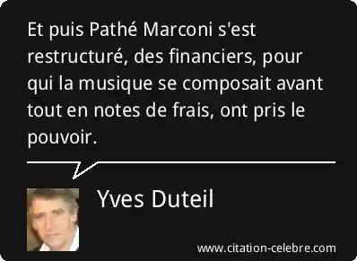 Et puis Pathé Marconi s'est restructuré, des financiers, pour qui la musique se composait avant tout en notes de frais, ont pris le pouvoir.