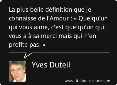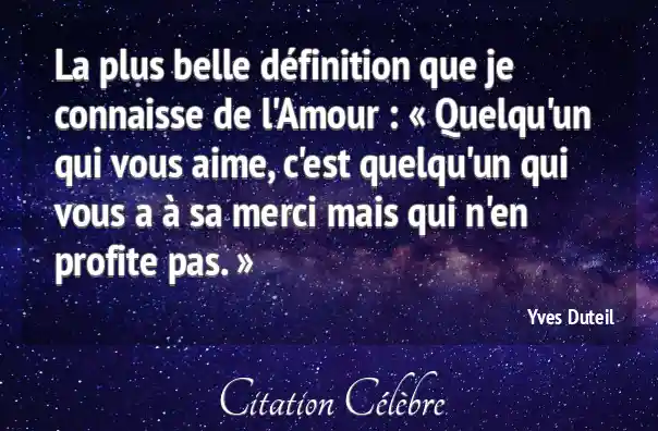La plus belle définition que je connaisse de l'Amour : « Quelqu'un qui vous aime, c'est quelqu'un qui vous a à sa merci mais qui n'en profite pas. »