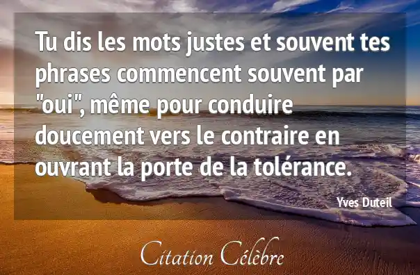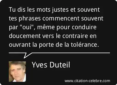 Tu dis les mots justes et souvent tes phrases commencent souvent par "oui", même pour conduire doucement vers le contraire en ouvrant la porte de la tolérance.