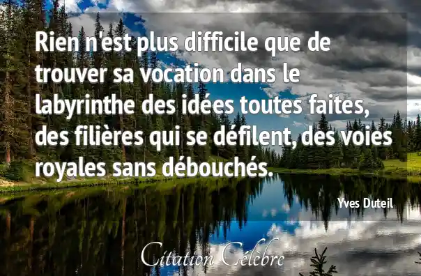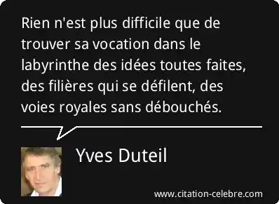 Rien n'est plus difficile que de trouver sa vocation dans le labyrinthe des idées toutes faites, des filières qui se défilent, des voies royales sans débouchés.