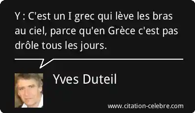 Y : C'est un I grec qui lève les bras au ciel, parce qu'en Grèce c'est pas drôle tous les jours.