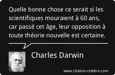 Quelle bonne chose ce serait si les scientifiques mouraient à 60 ans, car passé cet âge, leur opposition à toute théorie nouvelle est certaine.