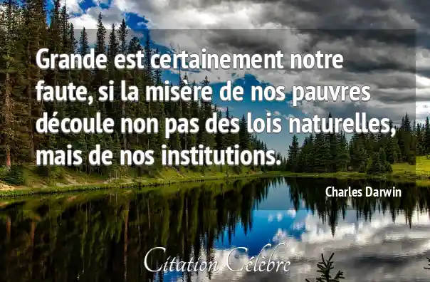 Grande est certainement notre faute, si la misère de nos pauvres découle non pas des lois naturelles, mais de nos institutions.