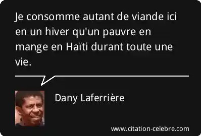 Je consomme autant de viande ici en un hiver qu'un pauvre en mange en Haïti durant toute une vie.