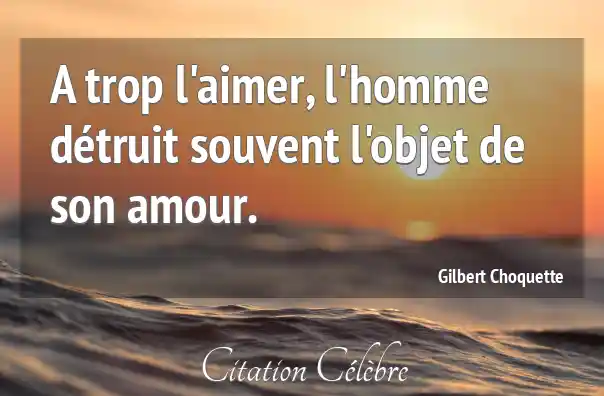 A trop l'aimer, l'homme détruit souvent l'objet de son amour.