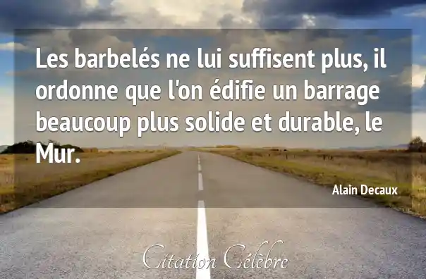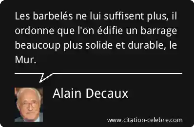 Les barbelés ne lui suffisent plus, il ordonne que l'on édifie un barrage beaucoup plus solide et durable, le Mur.