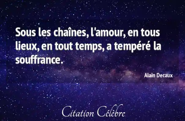 Sous les chaînes, l'amour, en tous lieux, en tout temps, a tempéré la souffrance.
