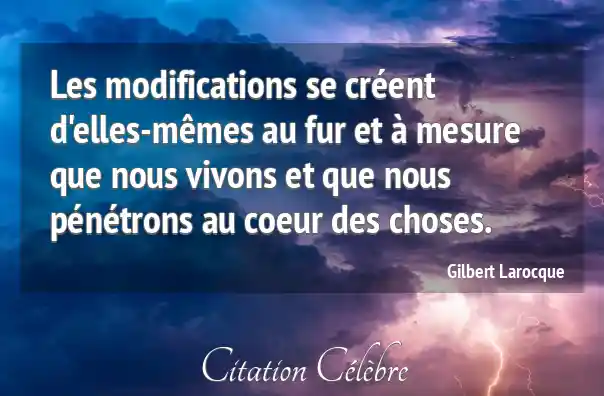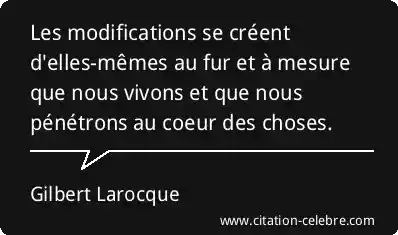 Les modifications se créent d'elles-mêmes au fur et à mesure que nous vivons et que nous pénétrons au coeur des choses.