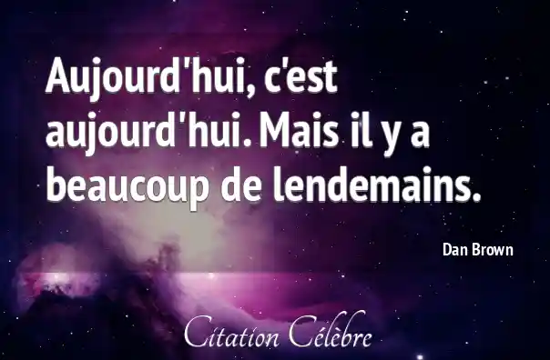 Aujourd'hui, c'est aujourd'hui. Mais il y a beaucoup de lendemains.