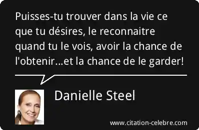 Puisses-tu trouver dans la vie ce que tu désires, le reconnaitre quand tu le vois, avoir la chance de l'obtenir...et la chance de le garder!