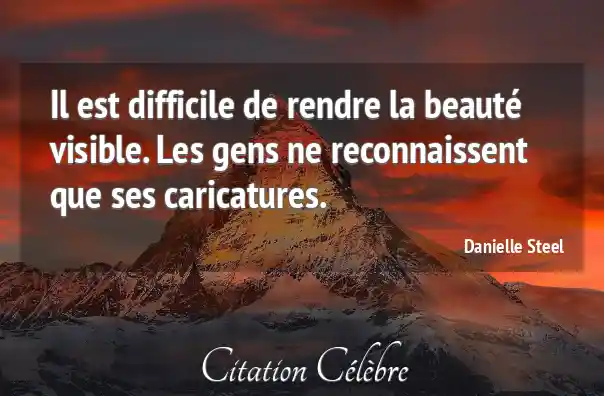 Il est difficile de rendre la beauté visible. Les gens ne reconnaissent que ses caricatures.