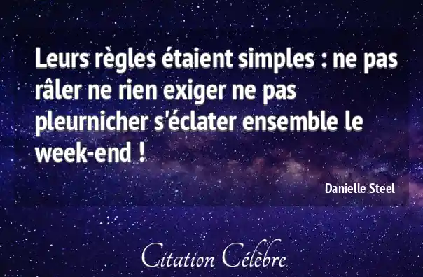 Leurs règles étaient simples : ne pas râler ne rien exiger ne pas pleurnicher s'éclater ensemble le week-end !