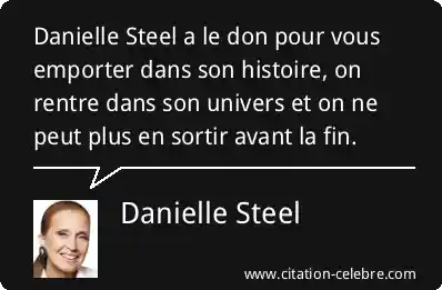Danielle Steel a le don pour vous emporter dans son histoire, on rentre dans son univers et on ne peut plus en sortir avant la fin.