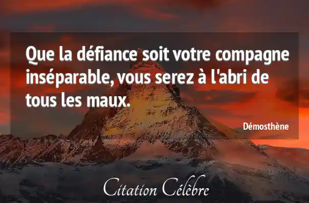 Que la défiance soit votre compagne inséparable, vous serez à l'abri de tous les maux.