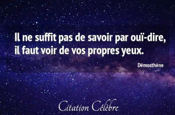 Il ne suffit pas de savoir par ouï-dire, il faut voir de vos propres yeux.