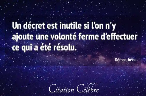 Un décret est inutile si l'on n'y ajoute une volonté ferme d'effectuer ce qui a été résolu.