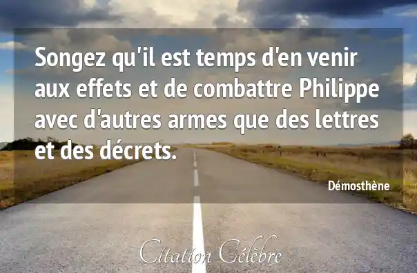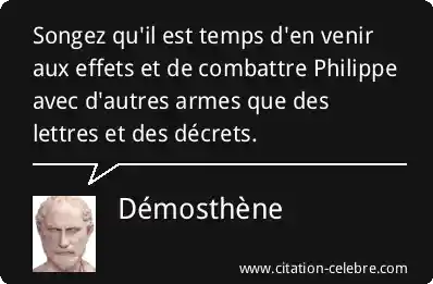 Songez qu'il est temps d'en venir aux effets et de combattre Philippe avec d'autres armes que des lettres et des décrets.
