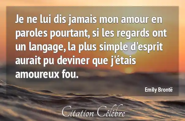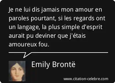 Je ne lui dis jamais mon amour en paroles pourtant, si les regards ont un langage, la plus simple d'esprit aurait pu deviner que j'étais amoureux fou.