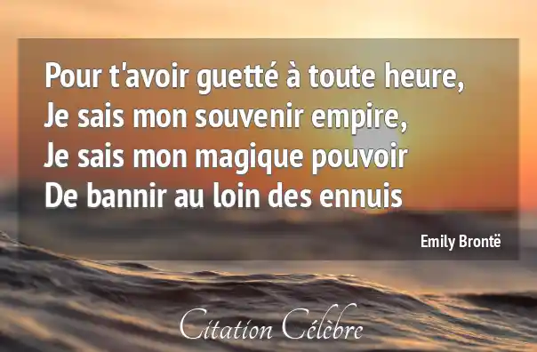 Pour t'avoir guetté à toute heure,Je sais mon souvenir empire,Je sais mon magique pouvoirDe bannir au loin des ennuis